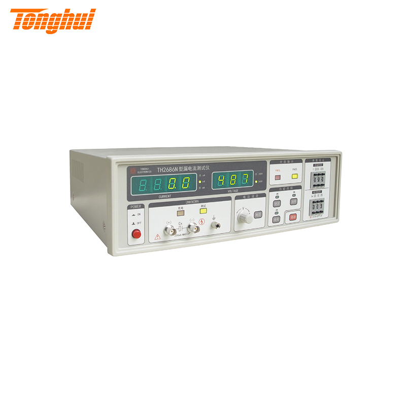 TH2686型电解电容漏电流测试仪是一种以微处理技术为基础的自动测量电解电容漏电流参数的测试仪器。测试电压连续可调,电压三位数字显示,电流三位半数字显示,充电-测试自动转换,最大测试电压500V,最大测试电流20mA,最大充电电流200mA,最长自动充电时间为99.9秒。仪器具有电流超限指示,测试速度快,操作方便,安全可靠等特点。适用于电解电容器生产线质量保证、进货检验等要求。