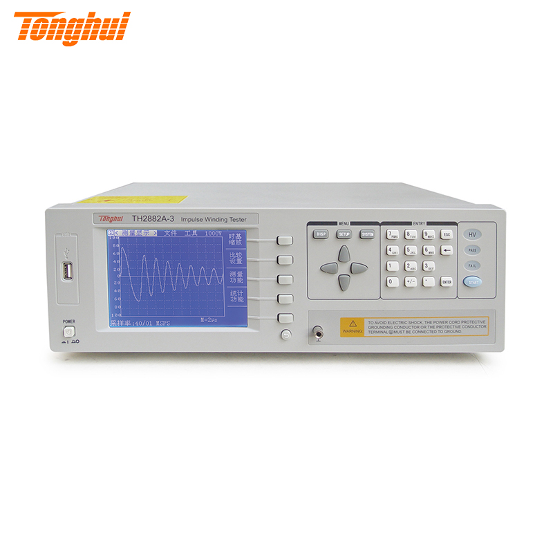 线圈类产品(如变压器、电机等)由于绕线材料、磁性材料、骨架、加工工艺等因素的影响会产生线圈层间、匝间及引脚间等绝缘性能的降低。 TH2882A系列脉冲式线圈测试仪是采用高速取样技术研制的新一代线圈类产品绝缘性能的测试仪器,可为大多数线圈类产品提供测试解决方案。 TH2882A将标准线圈的采样波形存储于仪器中,测试时将被测波形与标准波形比较,根据设定的判据(面积、面积差、相位差、电晕等)以判定被测线圈的优劣。