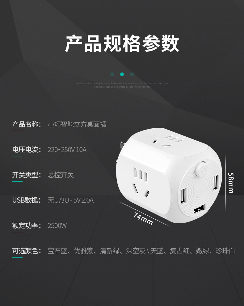 商品名称:智能魔方接线板家用插排多功能充电源排插座