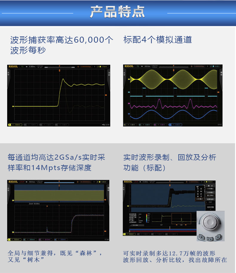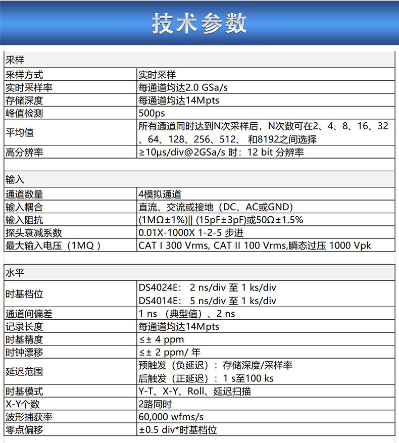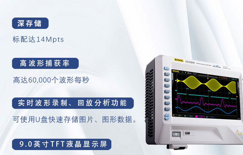 商品名称:Rigol示波器,DS4014E,100MHz带宽,4通道,2GSa/s采样率