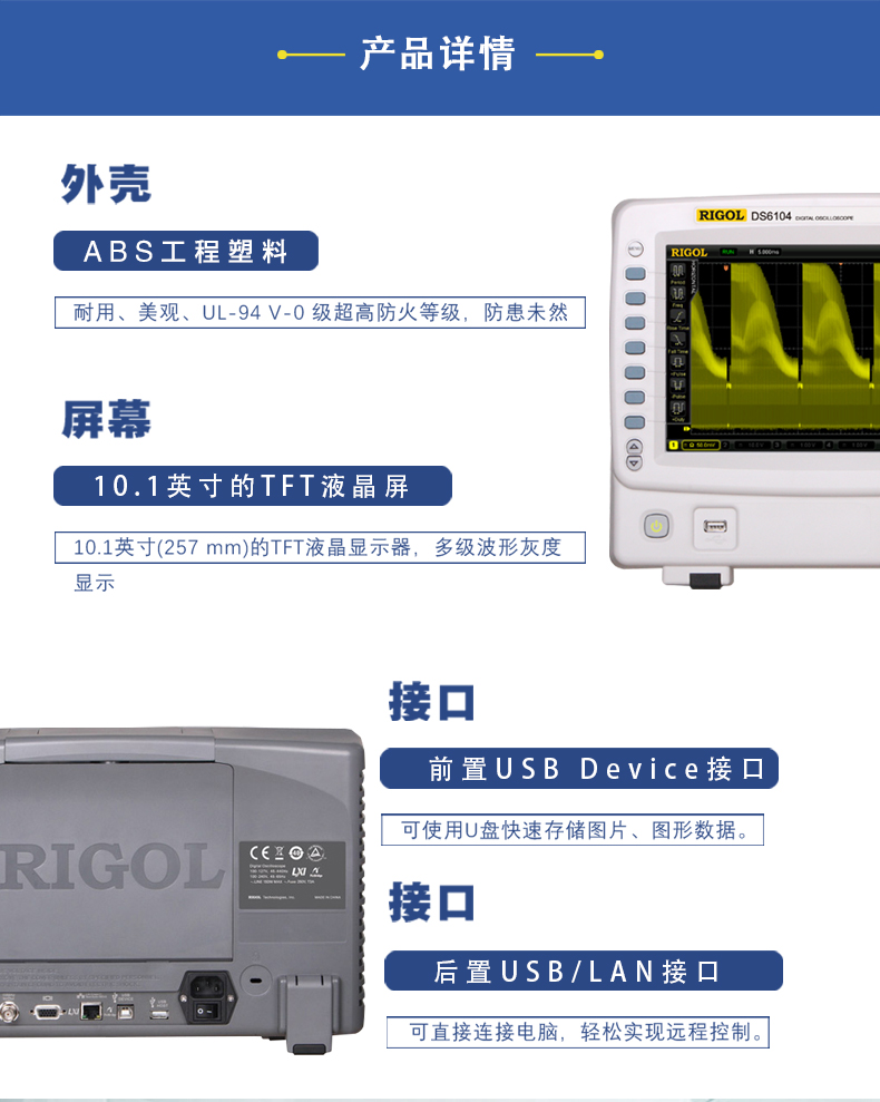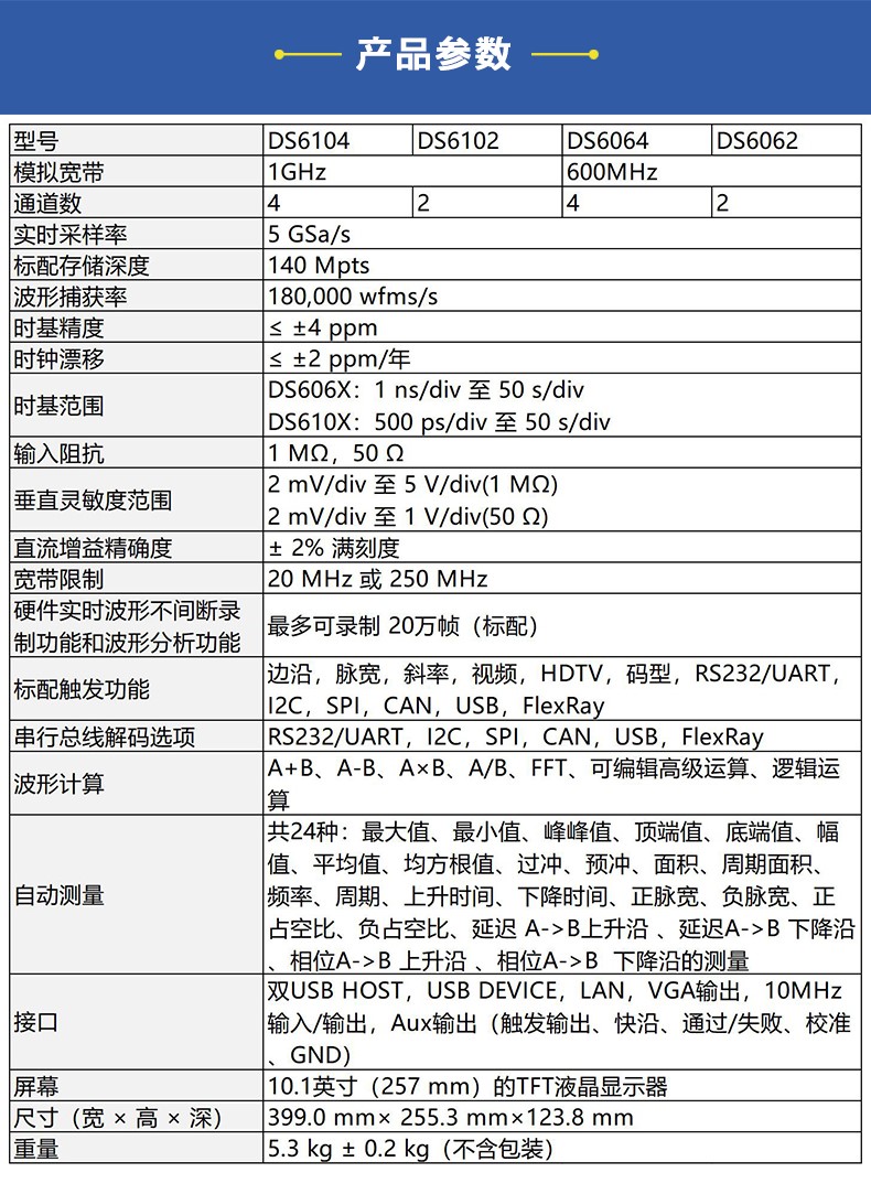 商品名称:Rigol示波器,DS6104,1GHz带宽,4通道,5GSa/s采样率