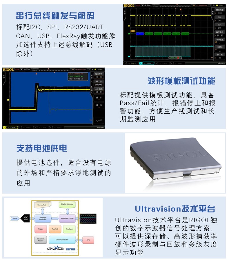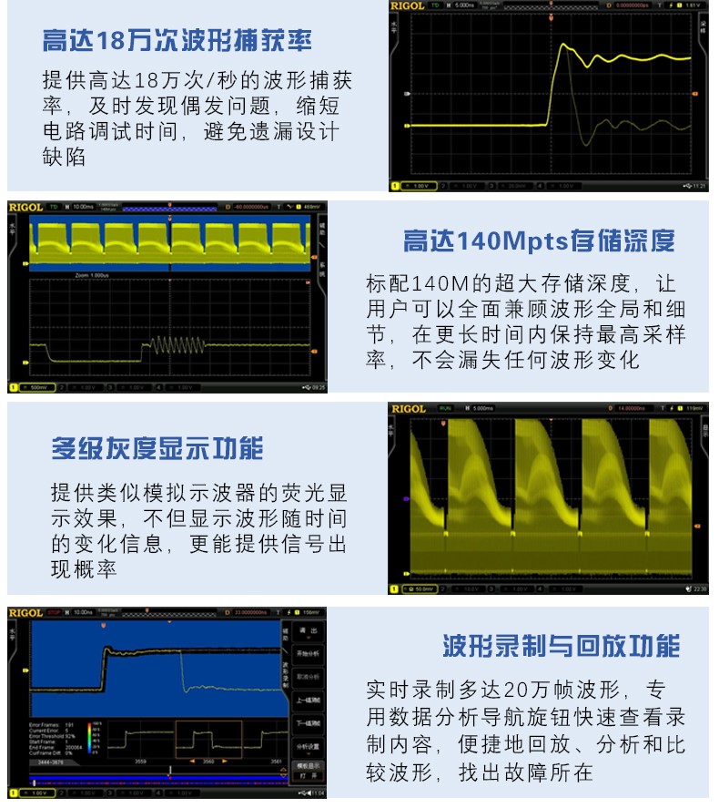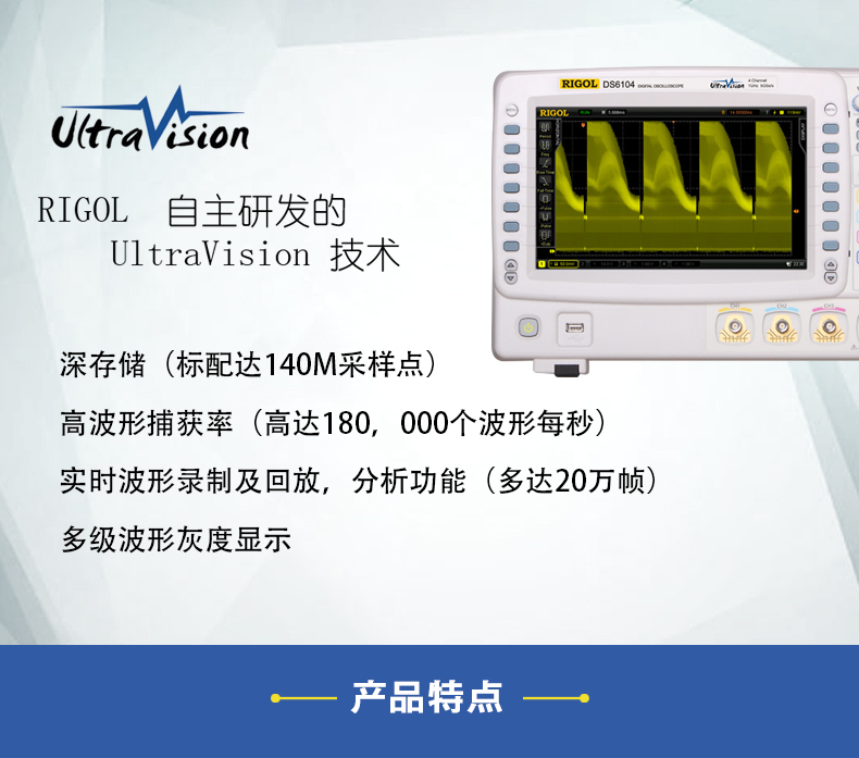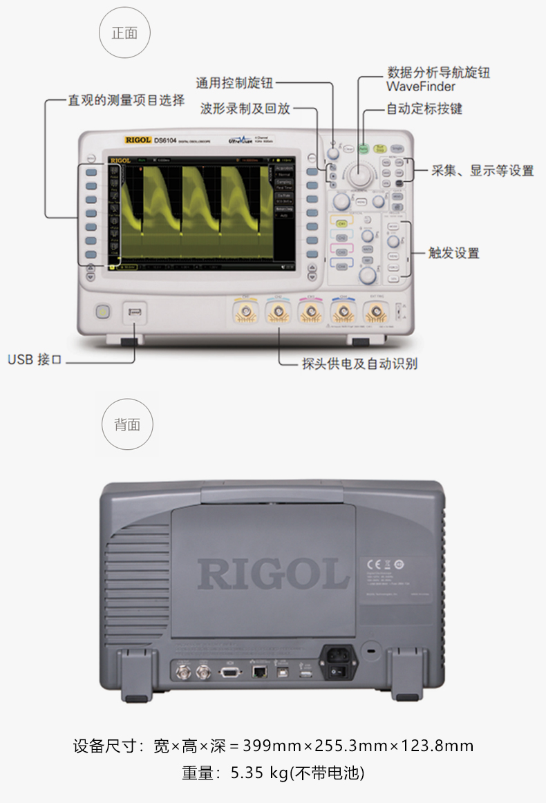 Rigol示波器,DS6104,1GHz带宽,4通道,5GSa/s采样率