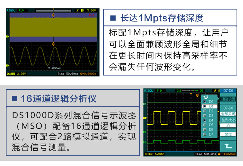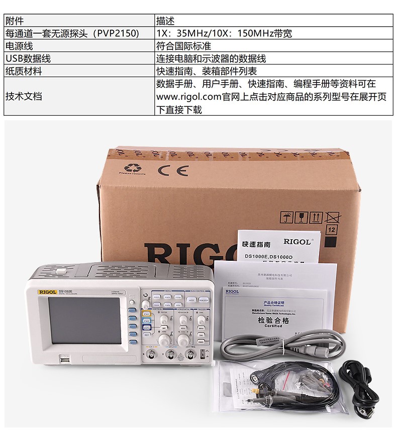 Rigol示波器,DS1102E,100MHz带宽,2通道,1GSa/s采样率
