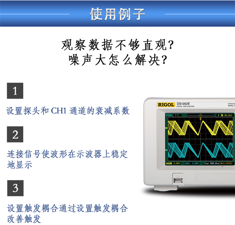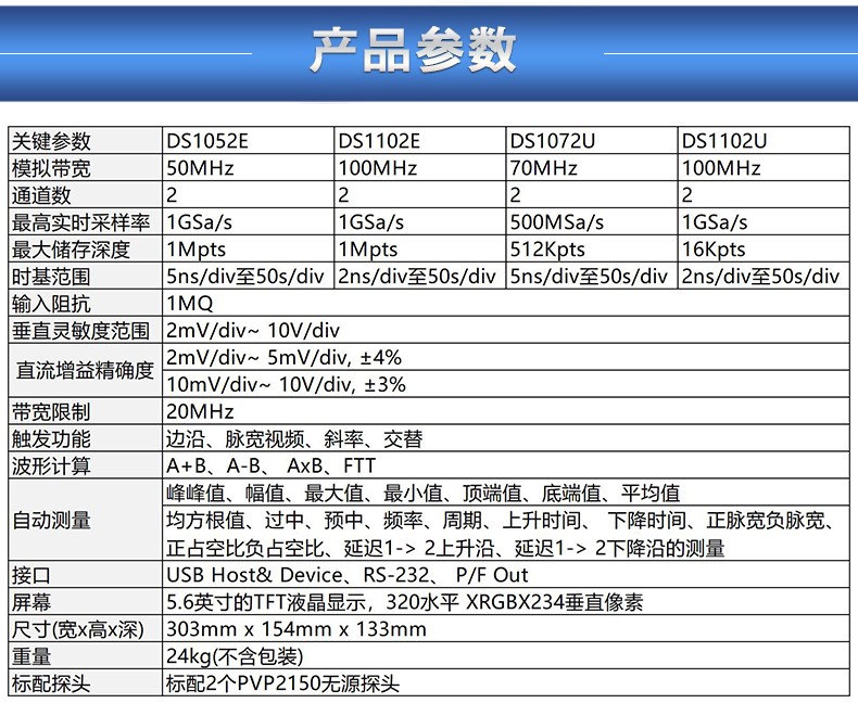 商品名称:Rigol示波器,DS1102E,100MHz带宽,2通道,1GSa/s采样率