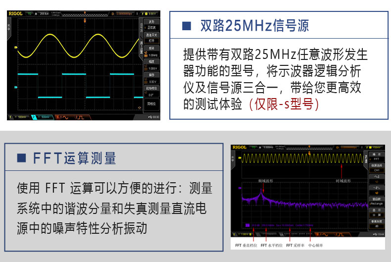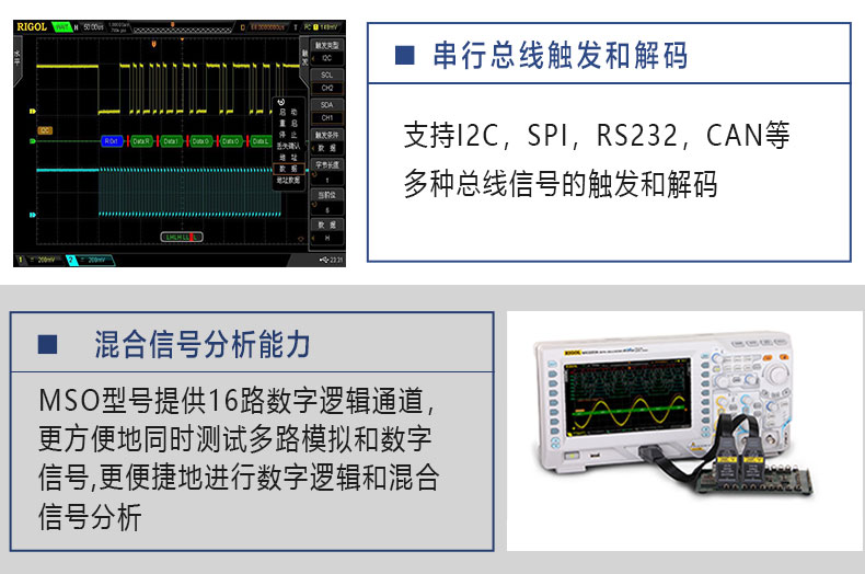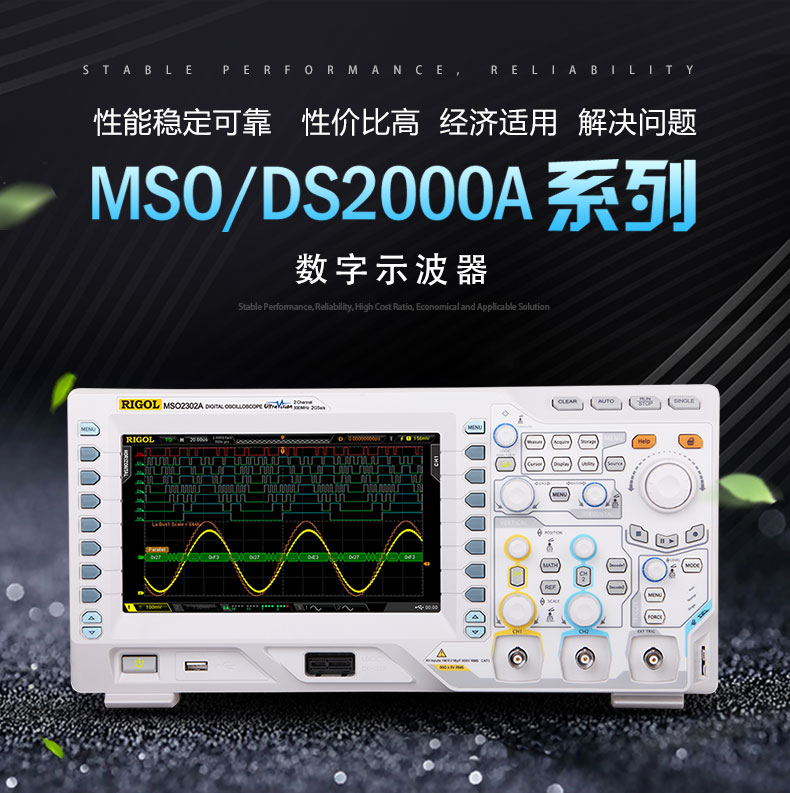 Rigol示波器,MSO2202A-S,200MHz带宽,双通道,2GSa/s采样率,16通道逻辑分析,双通道25MHz任意波信号源
