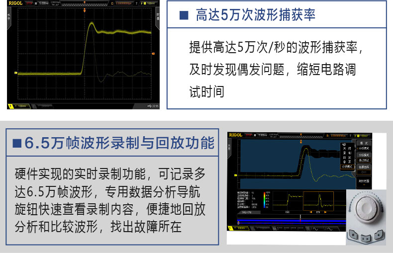 Rigol示波器,MSO8104,1 GHz带宽,10 GSa/s采样率,500 Mpts存储深度,4模拟通道+16 数字通道