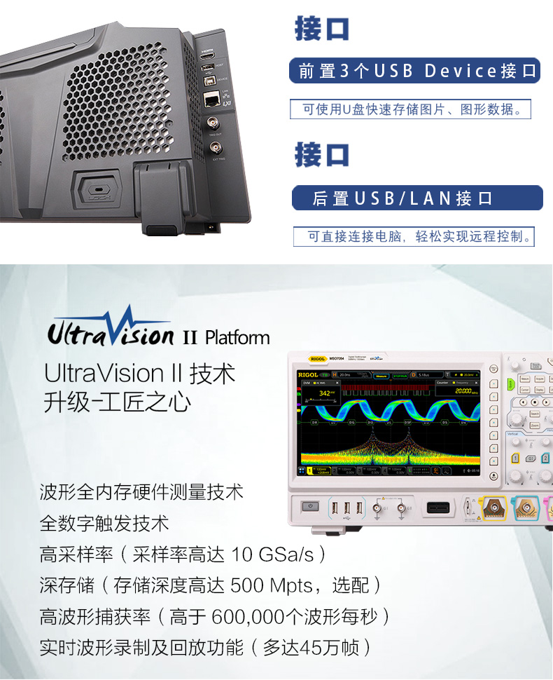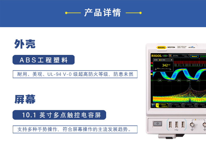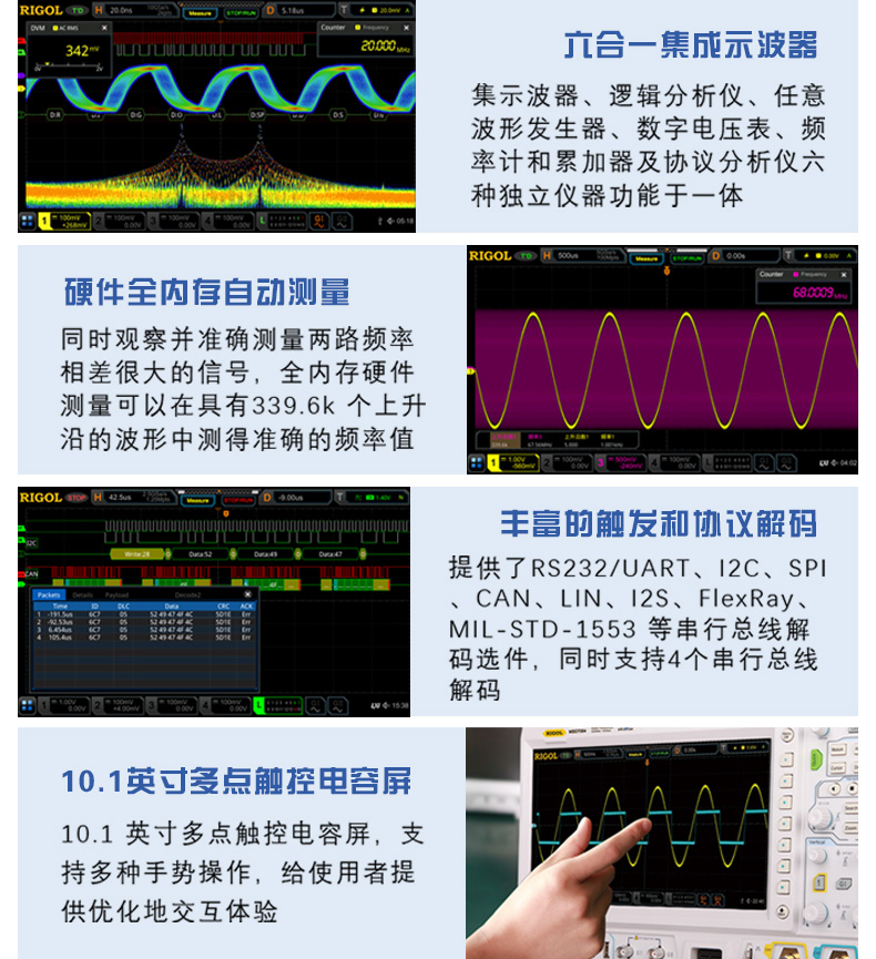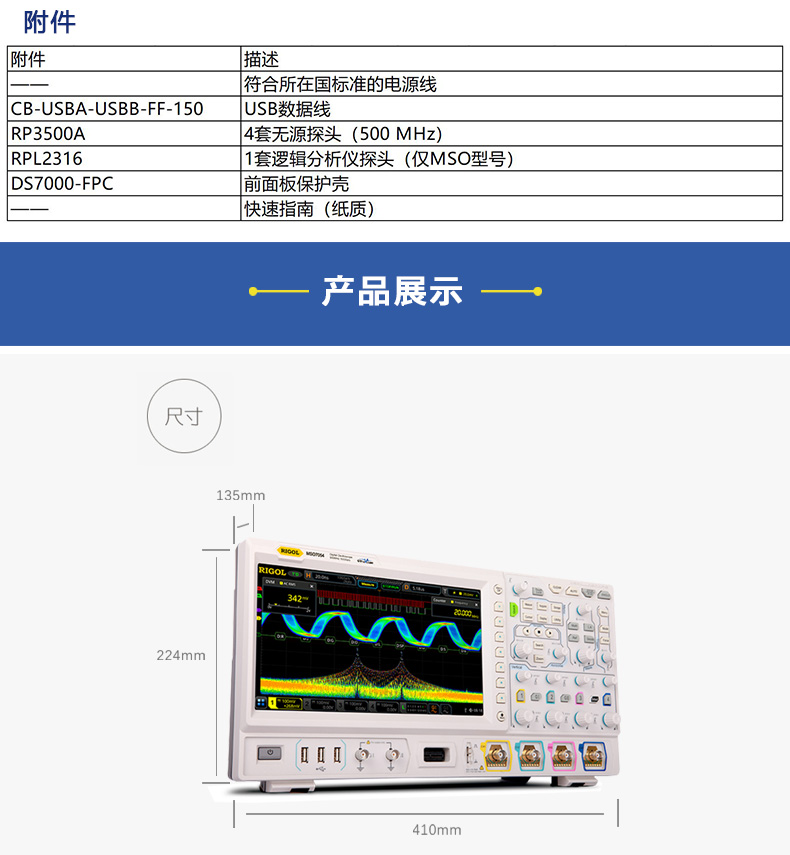 Rigol示波器,MSO7024,200MHz带宽,4通道,10GSa/s采样率,16通道逻辑分析