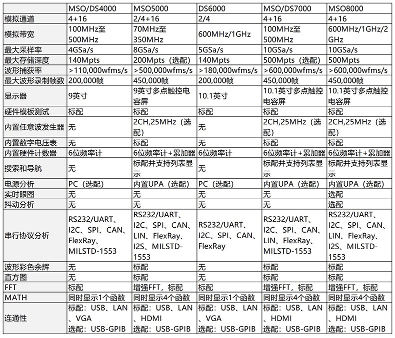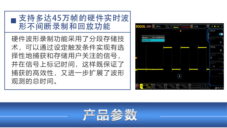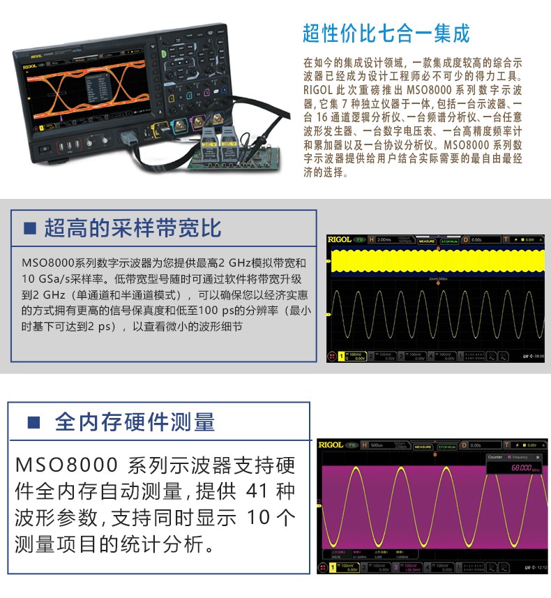 商品名称:Rigol示波器,MSO8104,1 GHz带宽,10 GSa/s采样率,500 Mpts存储深度,4模拟通道+16 数字通道