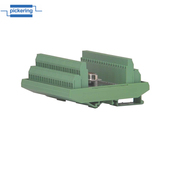 Suitable for mounting on DIN Rails this connector block provides a simple method of connecting to 96-Pin SCSI Style Micro-D connectors. The screw terminals use a rising cage clamp mechanism to minimize risk of copper strand breakage. The metal shell includes an internal insulation barrier under the carrier board.