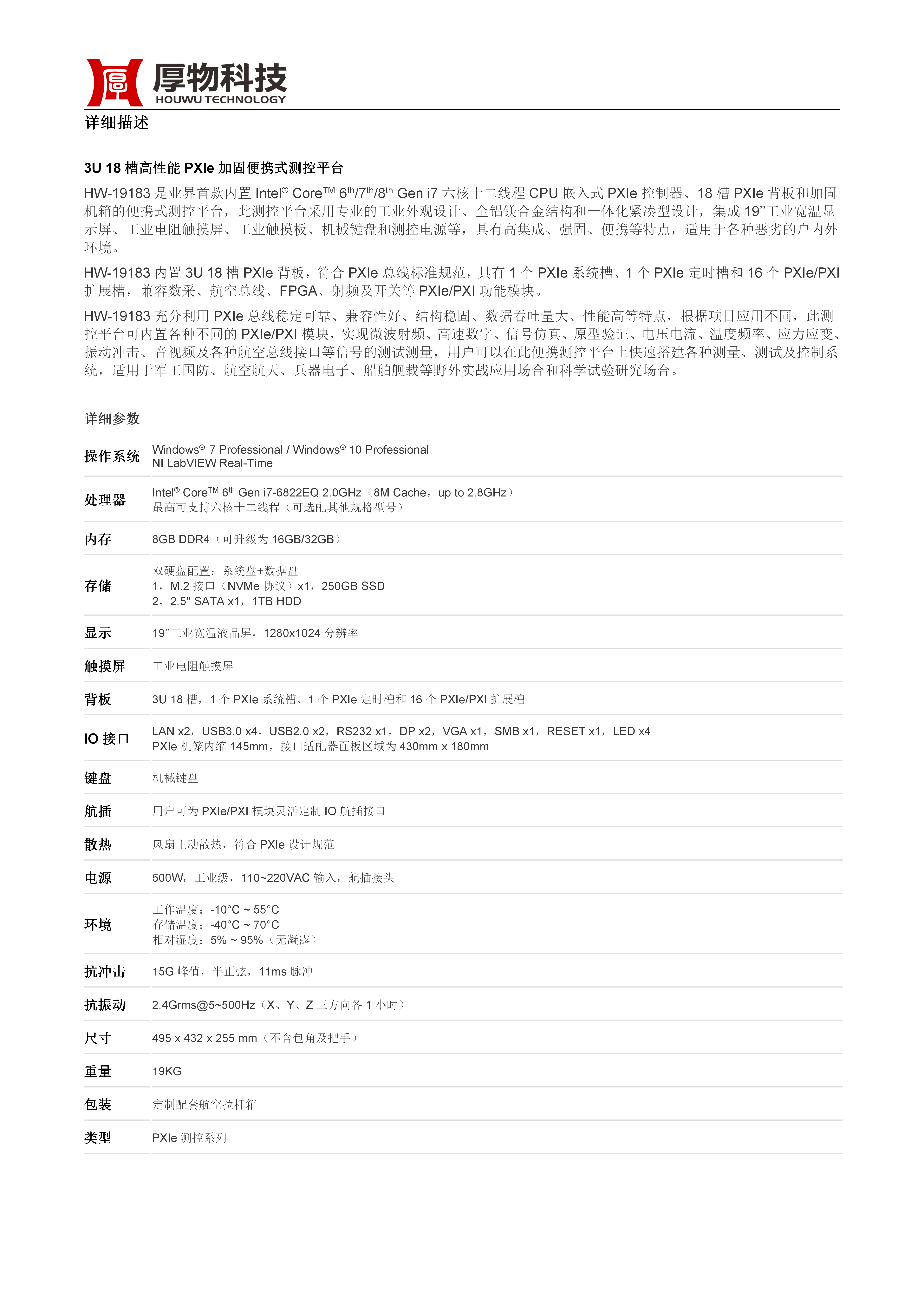 厚物科技,3U 18槽PXIe加固便携式测控平台(HW-19183)