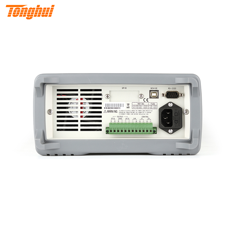 TH6500系列电源前后面板都配备有输出端、采样端和测试端,具有1/2标准机箱尺寸,配备齐全的通讯接口,支持SCPI和MODBUS通讯协议,使其可以方便的集成于自动化系统上。