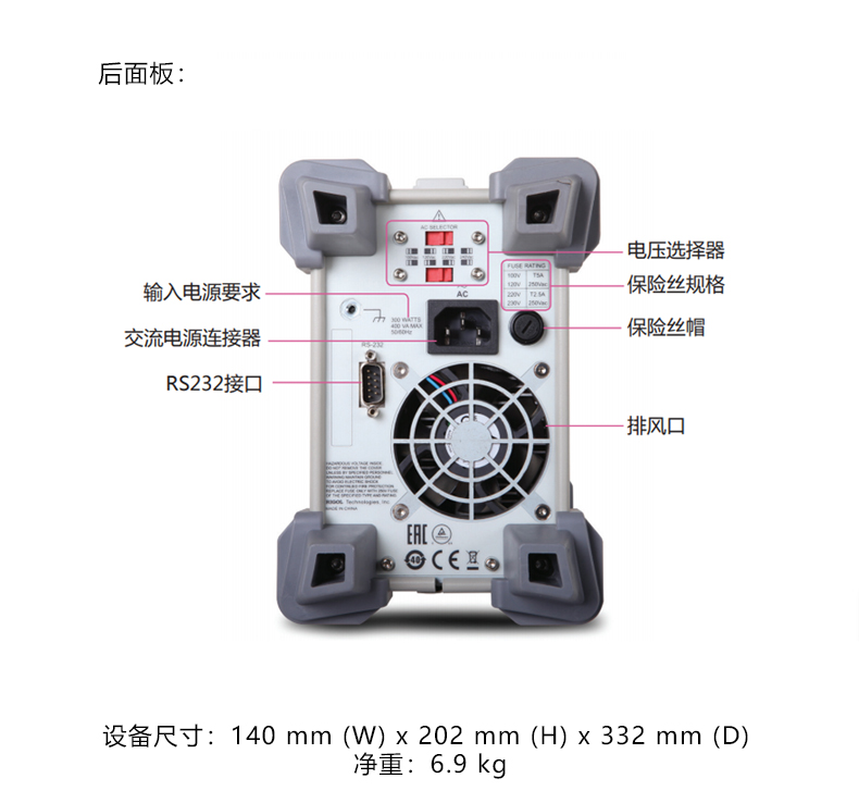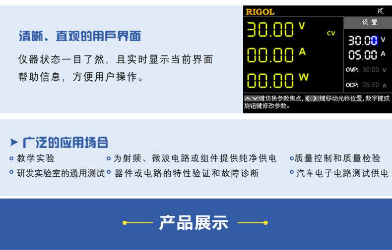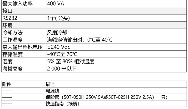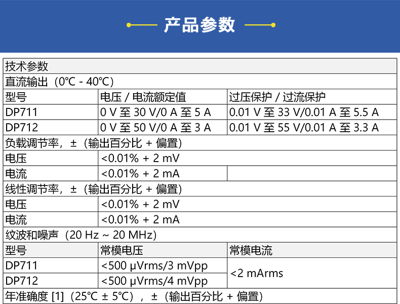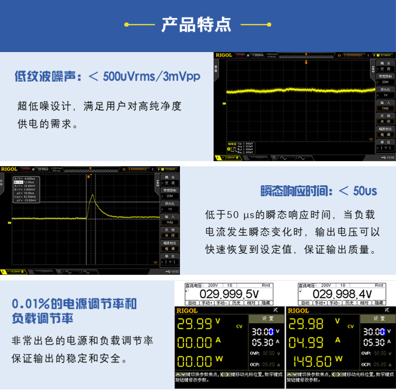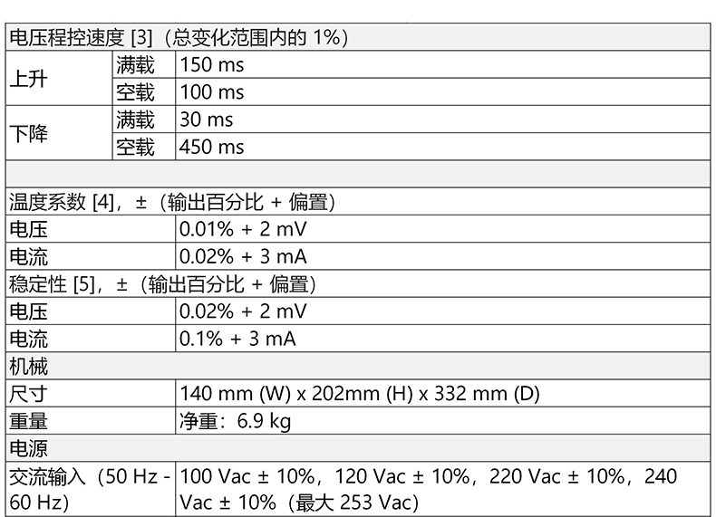 电源调整率(电压):电压: <0.01% + 2mV 电流: <0.01% + 2mA