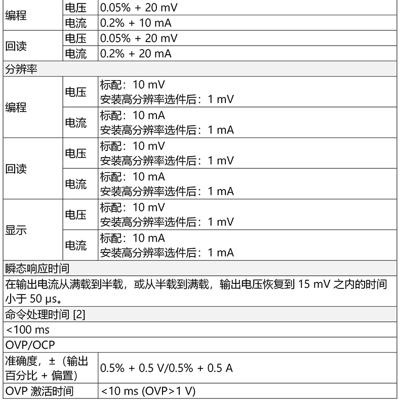 电压: <0.01% + 2mV 电流: <0.01% + 2mA
